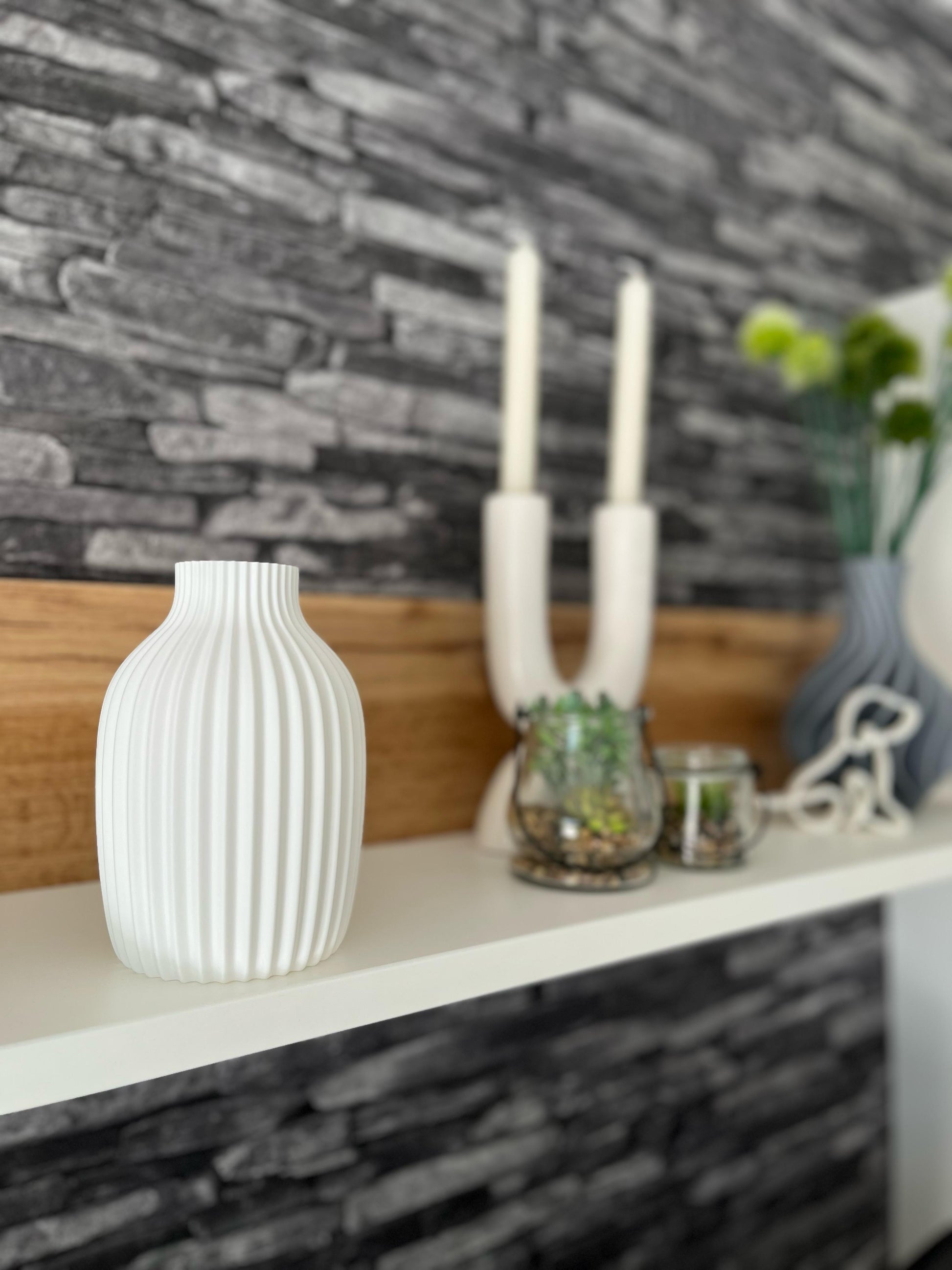 Unsere Vasen werden mit modernster 3D-Druck-Technologie gefertigt. Dadurch entstehen einzigartige Oberflächenstrukturen, die den besonderen Charme der Vase ausmachen. Minimale Unregelmäßigkeiten oder feine Drucklinien sind produktionsbedingt und stellen keinen Mangel dar – jede Vase ist ein Unikat! Größere Mängel entsprechen jedoch nicht unserem Qualitätsstandard. Diese sortieren wir aus und bieten sie als B-Ware zu einem günstigeren Preis an.